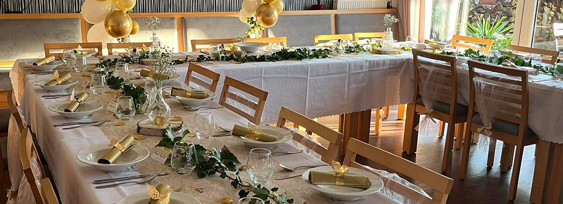 Svatební menu nebo občerstvení pro jiné akce vám obstará naše domácí restaurace. Vybrat si můžete z klasického svatebního menu, rautů, grilování nebo speciálního cateringového menu pro vaši událost.